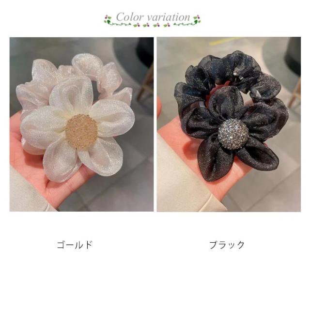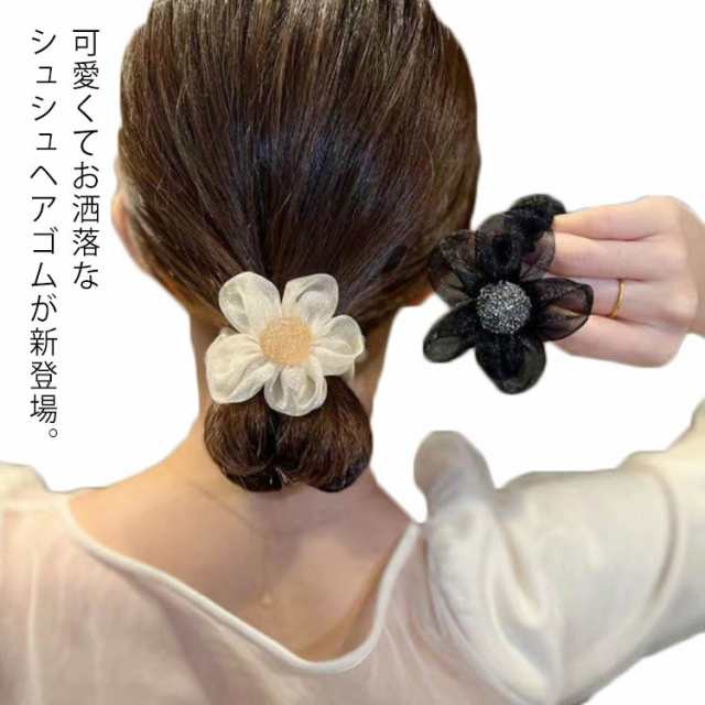 3本セット シュシュ チュール ヘアアクセ ヘアゴム ヘアアクセサリー しゅしゅ お花 ボリューム 大人 かわいい ヘアポニー 簡単アレンジ 髪飾り 髪留め 通勤 通学 シンプル 女性 プレゼント ギフト 送料無料