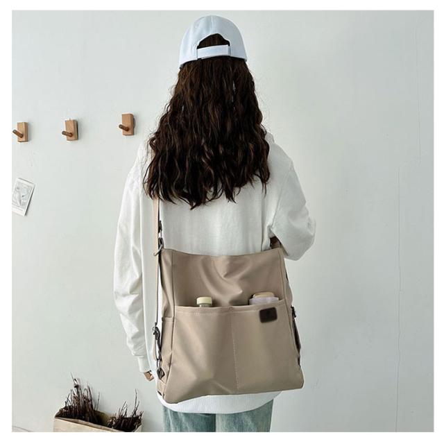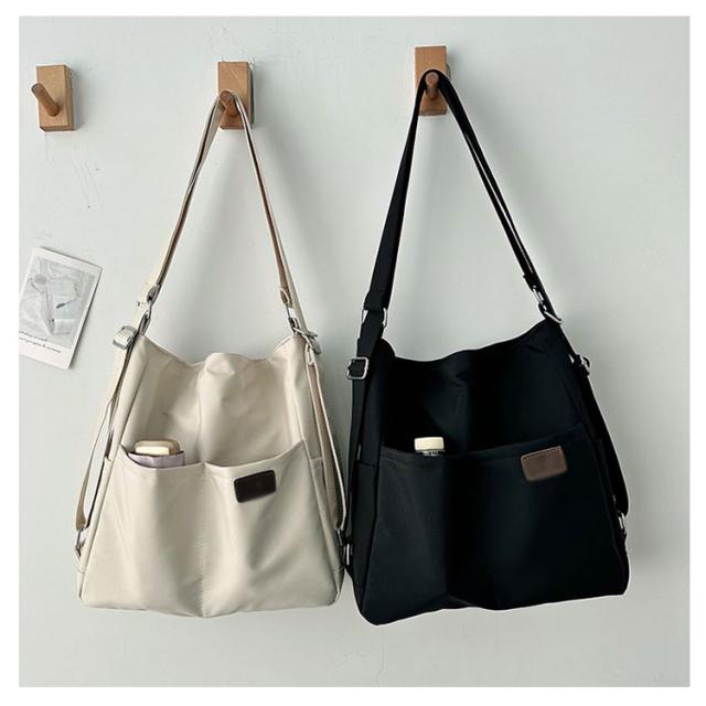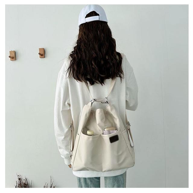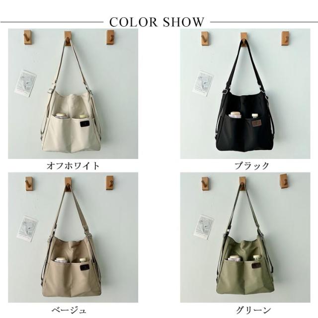 | 日常の必需品をまとめて収納できる大容量のショルダーバッグです。 ショルダーベルトの長さは調節可能で、リュック、ショルダーバッグ、斜め掛けバッグになります。 中央にファスナー付きがついているので貴重品なども安心です。 大きな開き口で、中身が見やすく、物が落ちる心配がありません。 撥水加工を施したナイロン素材なので、少しの雨ぐらいなら安心です。 両側のサイドポケットには口紅、鍵、イヤホンなどの小物を収納できます。 通学、通勤用はもちろん、ちょっとした旅行バッグとしても使えます。 | |