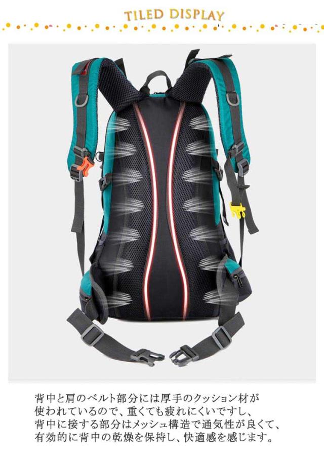 | 登山リュックサック 防災リュック!キャンプ、旅行、ハイキング、バックパッキングなど、タフなシーンに適したリュックです。 撥水のあるナイロン素材を採用するので、雨でも安心使用できます。 ポケットも多くストックホルダーやドリンクホルダーもあり機能的にあなたをサポート。タウンからアウトドアまで幅広くお使い頂けます。 背中と肩のベルト部分には厚手のクッション材が使われているので、重くても疲れにくいですし、背中に接する部分はメッシュ構造で通気性が良くて、有効的に背中の乾燥を保持し、快適感を感じます。 | |