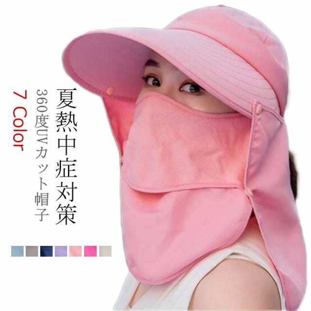 日焼け防止 帽子 レディース サンバイザー UV UVカット帽子 自転車 日焼け 熱中症 農作業 釣り 対策 紫外線対策 ハット フェイスカバー付 あごひも付き つば広 軽い 遮光 ハット