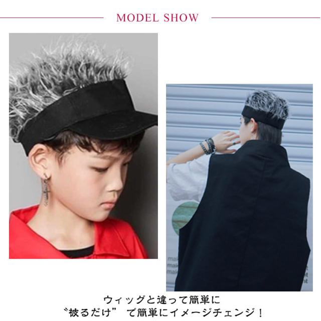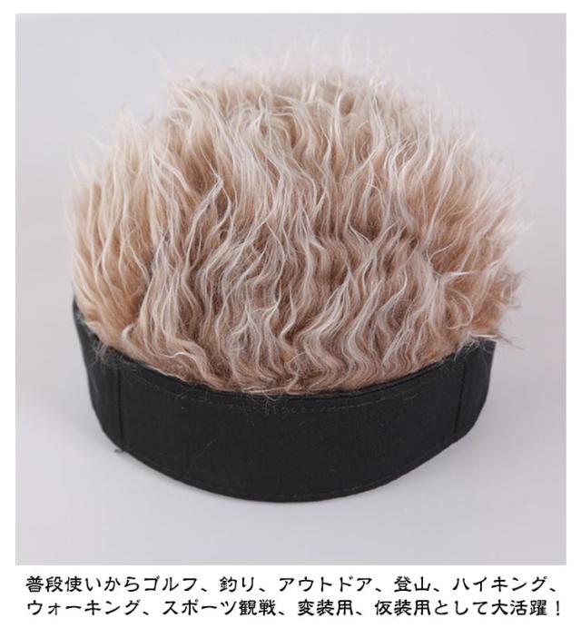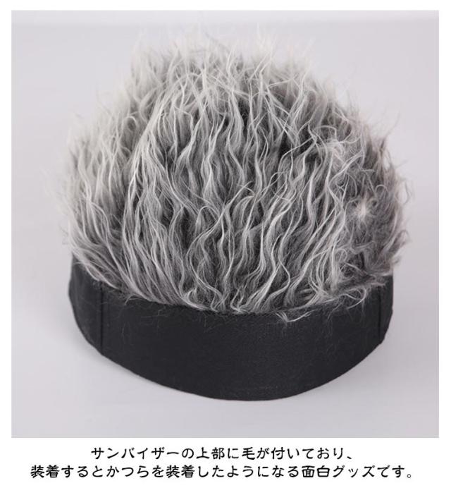 ウィッグ付 フサフサ 髪の毛 伸縮性 ヘアー かつら キャップ バイザー 父の日 敬老の日 プレゼント ギフト フレアー ハゲ テニス ゴルフ 釣り アウトドア はげ隠し ジョークグッズ
