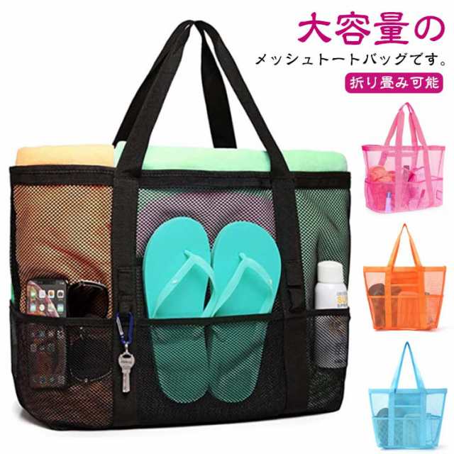 トートバッグ 軽量 プールバッグ ビーチバッグ 大容量 防水 ビーチバッグ メッシュバッグ 折り畳み可能 ビーチトートバッグ ビーチ/ショッピング/水泳/ジム/スパ/温泉/旅行用 肩掛け 手提げ お風呂バッグ 温泉バッグ バッグ 大きめ 送料無料