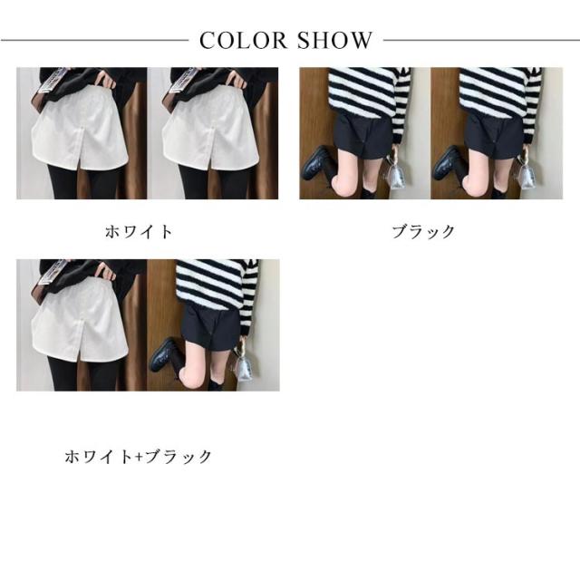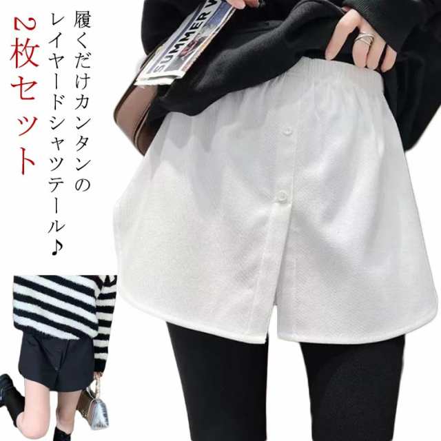 シャツ風 重ね着風 レイヤード 2枚セット 体型カバー フェイクレイヤード お尻周りカバー 大きいサイズ 付け裾 ウエストゴム 無地 春 夏 秋 つけ裾 オシャレ 冬 無地 カジュアル