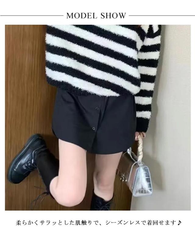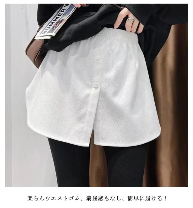 | 履くだけカンタンのレイヤードシャツテール♪ 柔らかくサラッとした肌触りで、シーズンレスで着回せます♪ 楽ちんウエストゴム、窮屈感もなし、簡単に履ける! 気になる腰周りを隠してくれるヒップカバーとしてもGOOD! パーカー、ニット、トレーナー、カットソー、Tシャツと合わせて、こなれ感を演出する優秀アイテムです! | |
