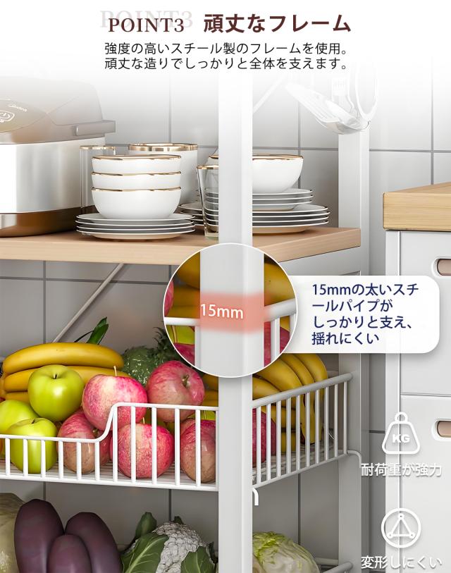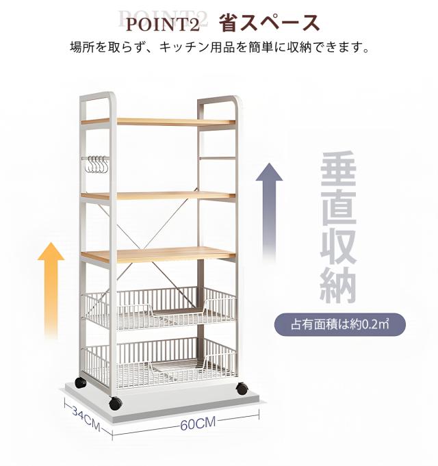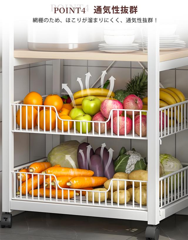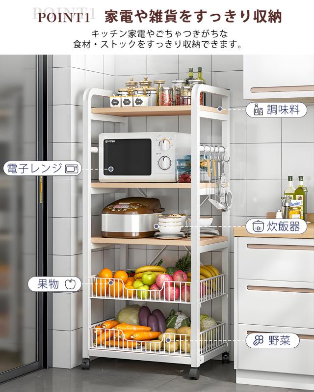【送料無料】キッチンラック 幅約60cm 4段 キッチンボード オープンラック 食器棚 ラック 棚 収納棚 シェルフ キッチン棚 レンジラック レンジ台 オープンシェルフ キッチンカート キッチン収納棚 カウンター収納 ホワイト ブラック