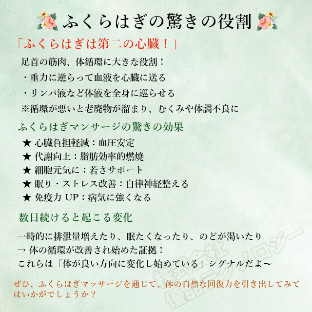 ※医師からマッサージを禁止されている方は使用をご遠慮ください。( 例:血栓塞栓症、重度の動脈瘤、急性静脈瘤、各種皮膚炎、皮膚感染症、重度の血行障害がある方など )