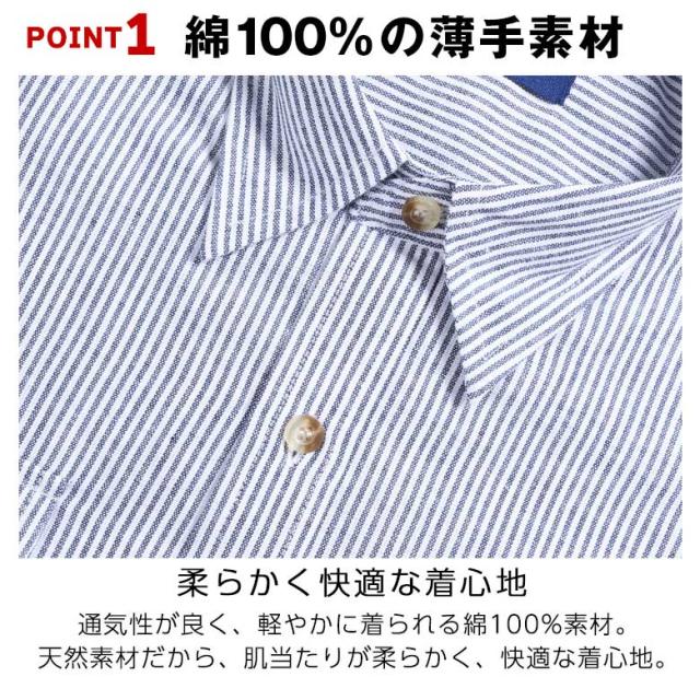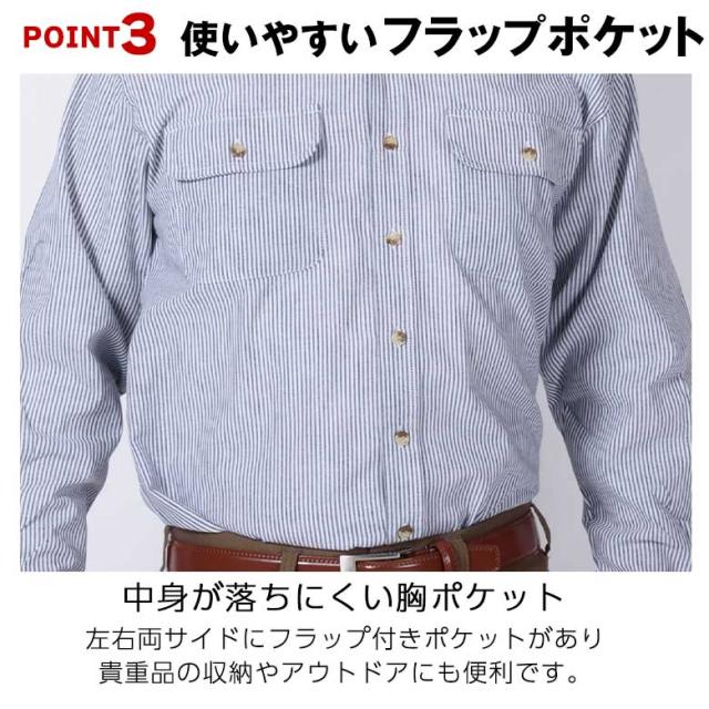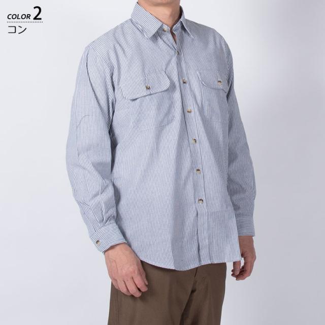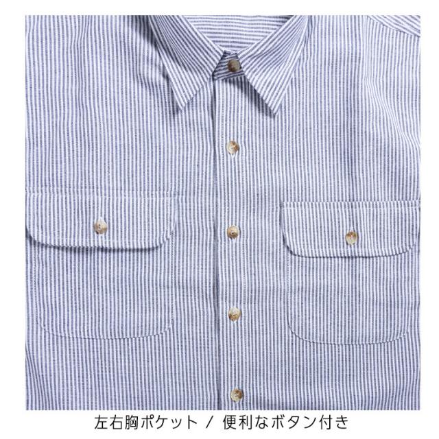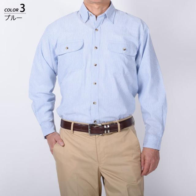 カジュアルシャツ メンズ 長袖 ヒッコリー コットン 綿 ストライプ 春夏 涼感 大きいサイズ ビッグサイズ 送料無料 メール便