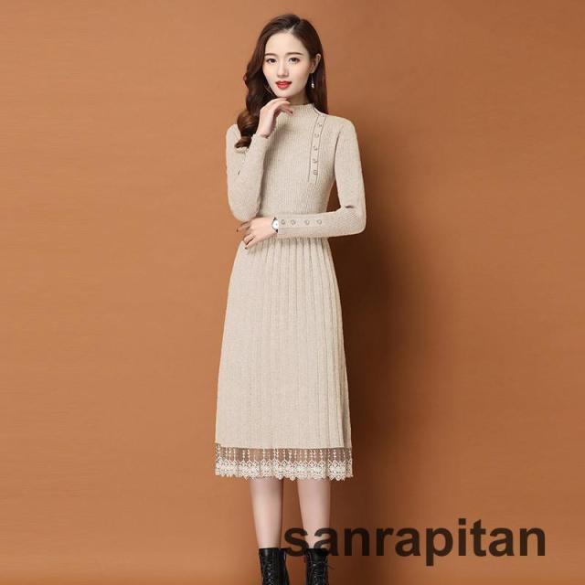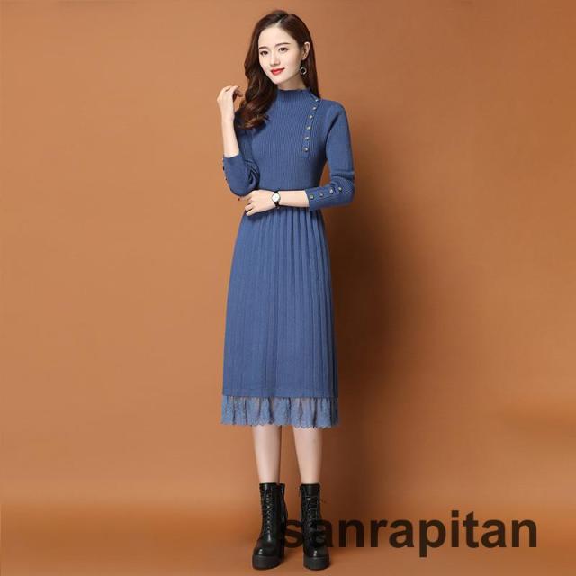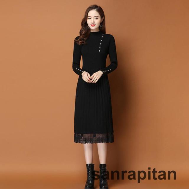 ニットワンピース レディース 膝丈 長袖 秋 冬 ワンピース きれいめ 着痩せ 通勤 OL 結婚式 新作 おしゃれ シンプル 上品 大人20代 30代 40代