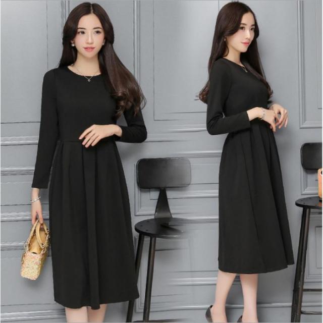 フォーマル ワンピース レディース 礼服 春 秋 冬 きれいめ 黒 ブラック クルーネック フレア Aライン ドレス ひざ丈 ロング丈 長袖 秋 タイムセール送料無料