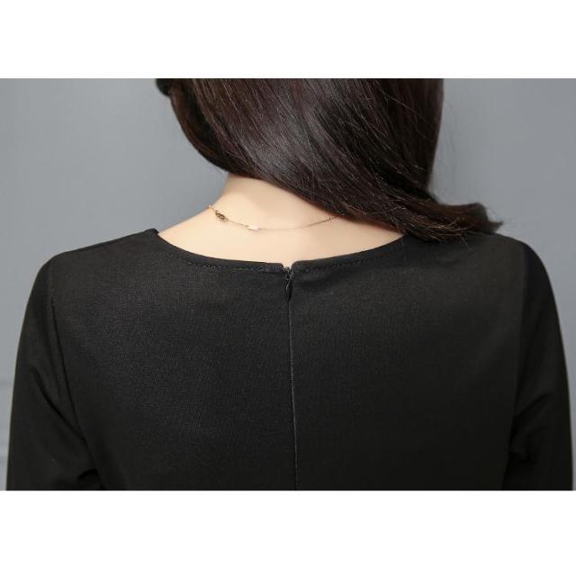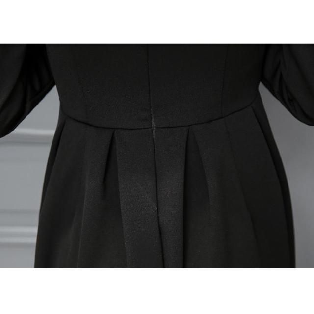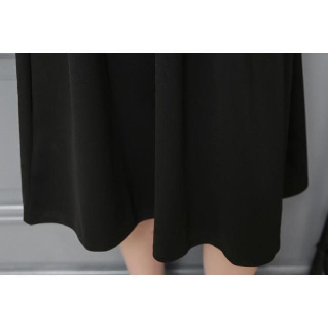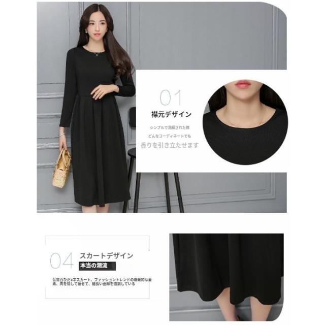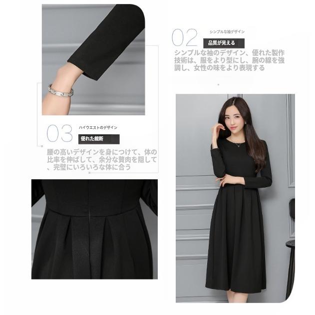 フォーマル ワンピース 喪服 レディース 礼服 春 秋 冬 きれいめ 黒 ブラック クルーネック フレア Aライン ドレス ひざ丈 ロング丈 長袖 3