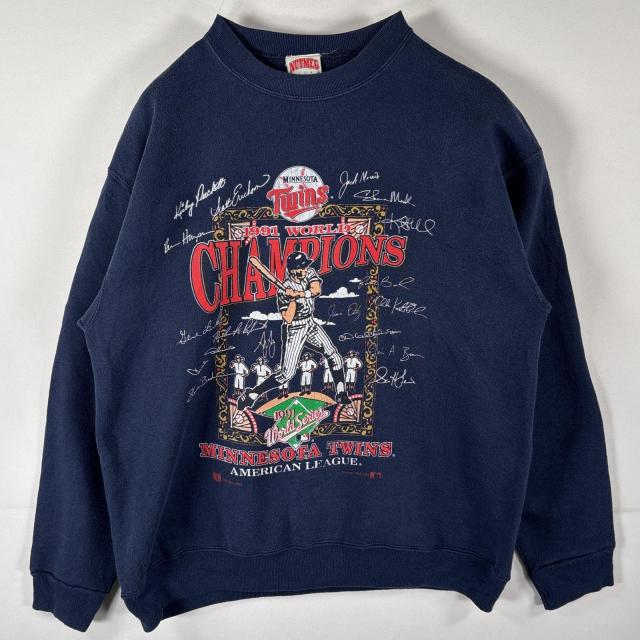 古着 90s/90年代 ナツメグ NUTMEG USA製 スウェット ワールドチャンピオンズ MLB トレーナー コピーライト L ネイビー メンズ