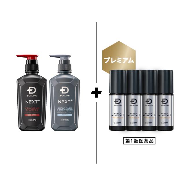 第1類医薬品 スカルプD メディカル ミノキ 5プレミアム×4 SCALP D NEXT+(スカルプD ネクストプラス) ボリュームアップシャンプー オイリー コンディショナー ボトル