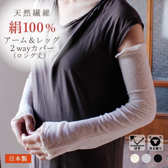 シルク100%アーム&レッグカバー(60cm丈)(日本製)メール便送料無料 2WAY 手袋 レッグウォーマー アームウォーマー アームカバー シルク UV