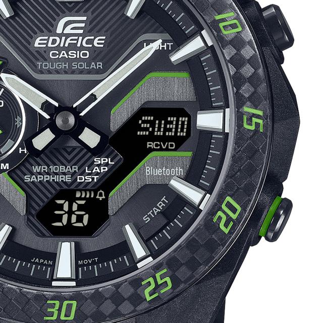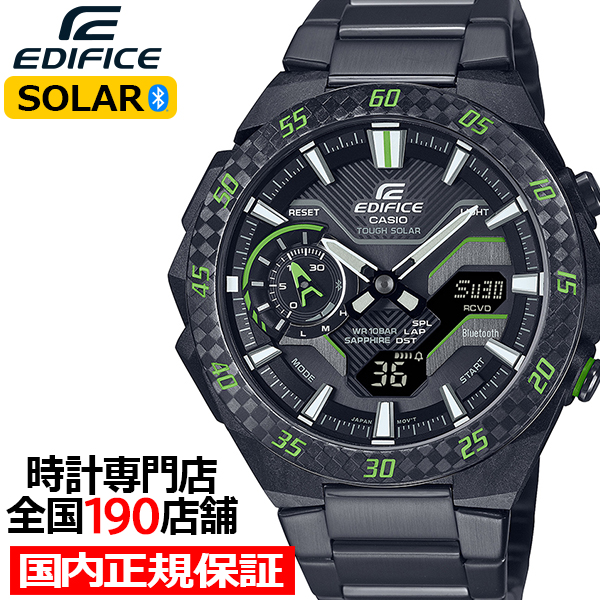 カシオ エディフィス ウインドフロウ グリーンアクセント ECB-2200YRC-1A3JF メンズ 腕時計 ソーラー Bluetooth メタルバンド ブラック