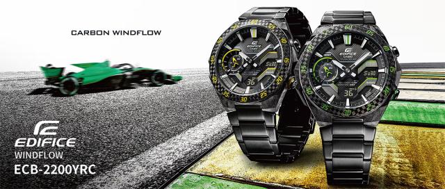 高機能モータースポーツウオッチEDIFICEから、フォーミュラカーが走る時の空気の流れに着想を得てデザインされたECB-2200 WINDFLOWです。