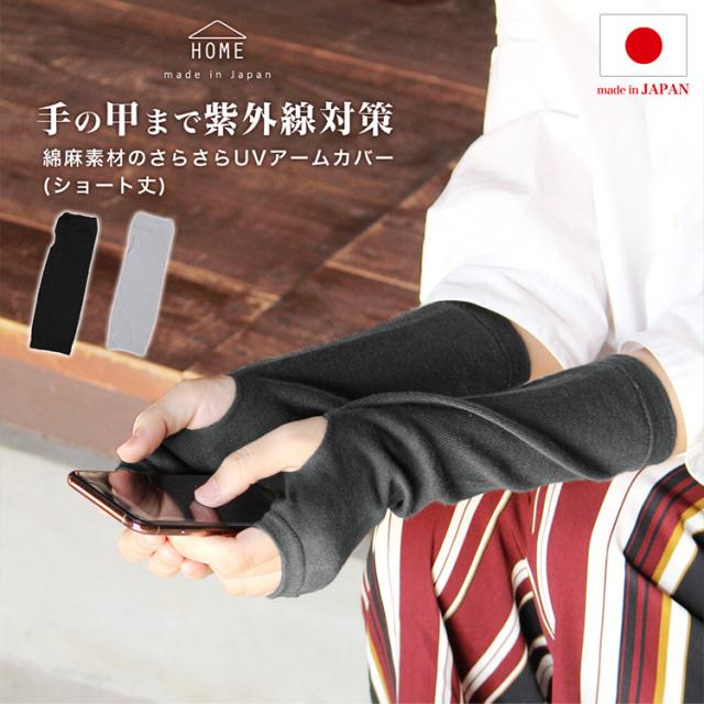 ◆日本製・綿麻素材のさらさらアームカバー(ショート丈)【HOME】◆