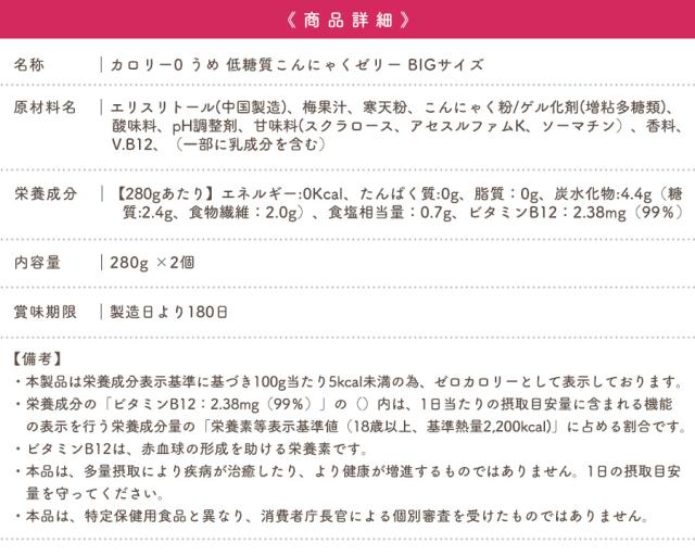 ■0カロリー 低糖質こんにゃくゼリー うめ ×2個