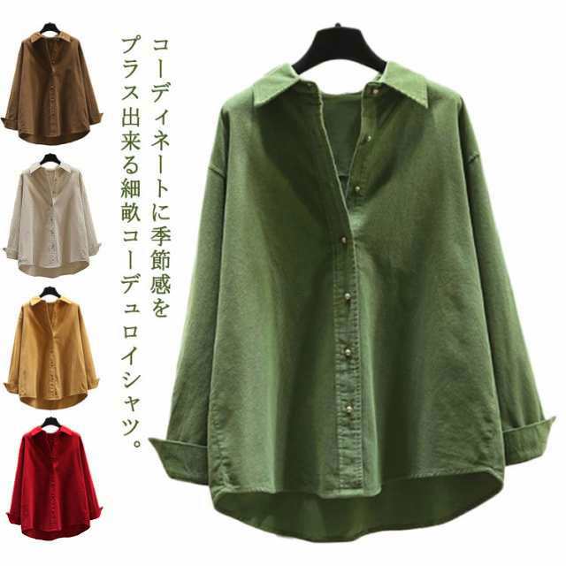 体型カバー ゆったり 長袖 起毛 トップス オーバーサイズ コーデュロイ 厚手 長袖シャツ コーデュロイ 冬 シャツ レディース ネルシャツ ブラウス コーデュロイシャツ あったか 羽織り 着?せ 細畝 秋服 秋物 無地 大人 カジュアル カーキ コーヒー ベージュ