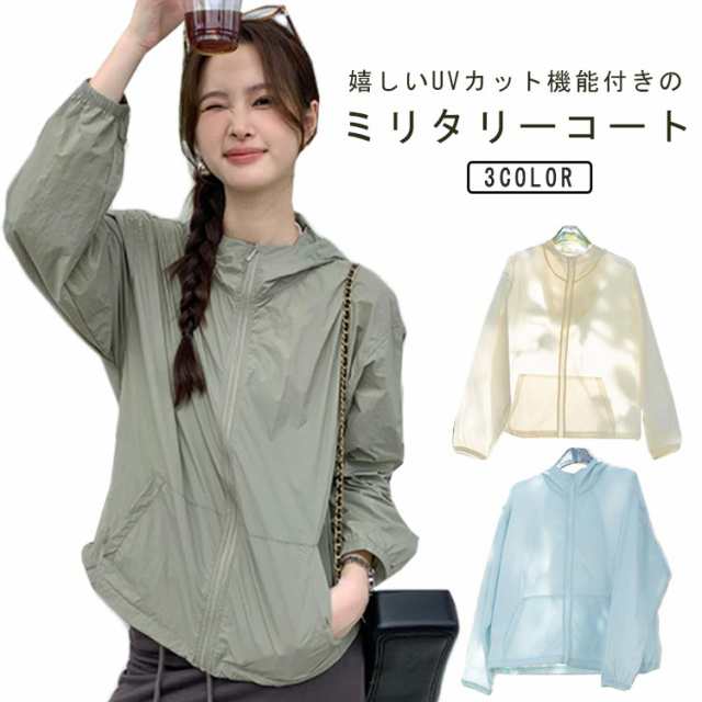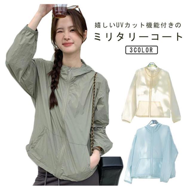 ジップアップ コート uvカット パーカー ミリタリー ロング レディース ジャケット 涼しい 長袖 フード付き カジュアル ラッシュガード 透け感 uv対策 接触冷感 速乾 薄手 冷感 UVパーカー 日焼け止め 薄手 パーカー 送料無料