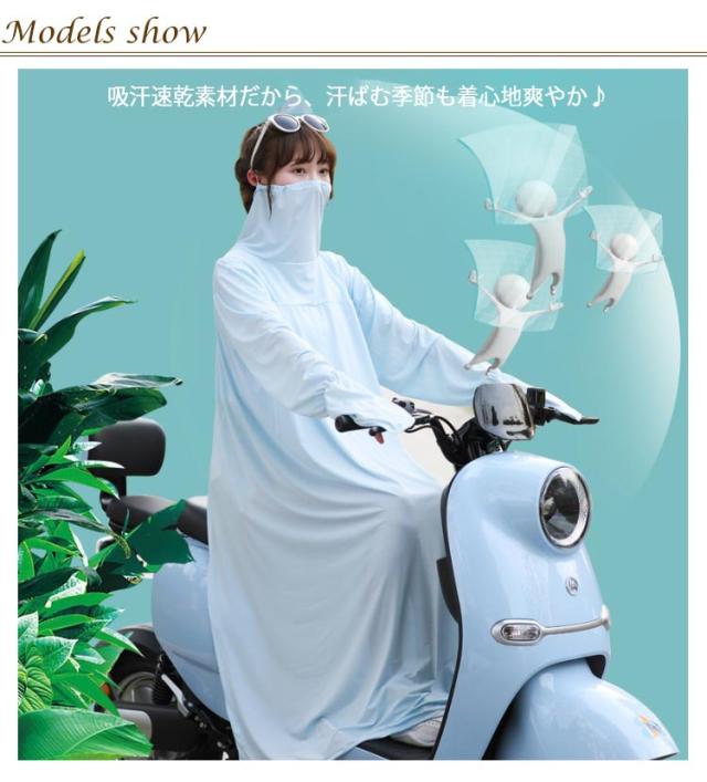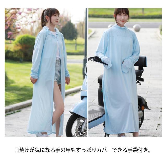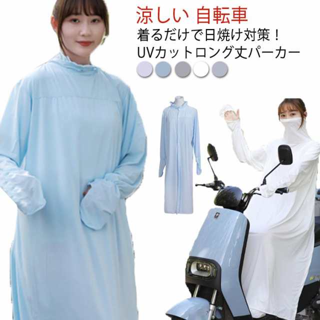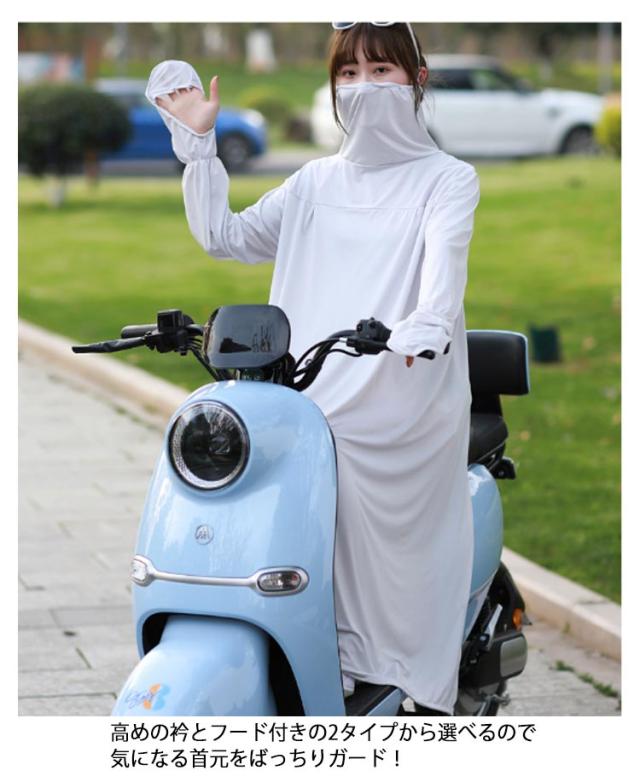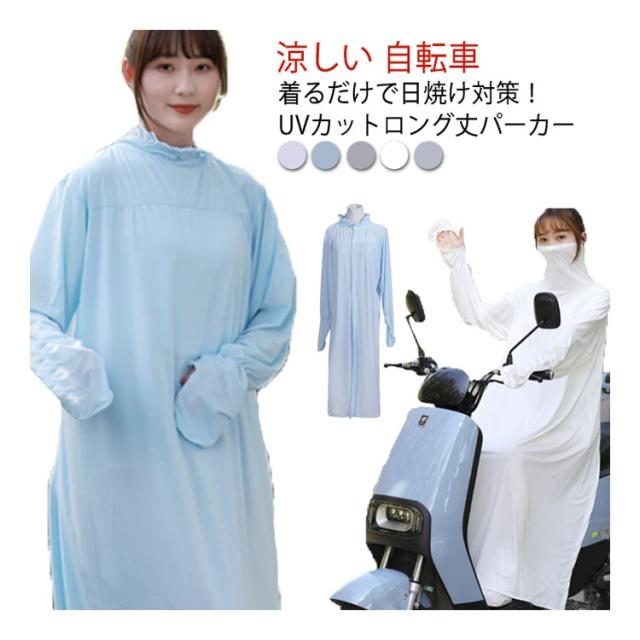 UVカットパーカー レディース ロング丈 自転車 スクーター 紫外線対策 UVケア 日焼け 防止 涼感 涼しい 日よけ 暑さ対策 手袋 フェイスカバー ハイネック 選べる2タイプ 通学 通勤 送迎 ママ 軽量 運転