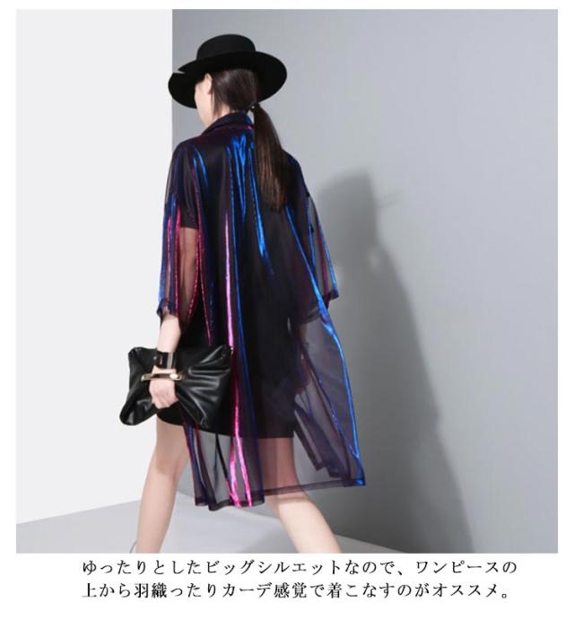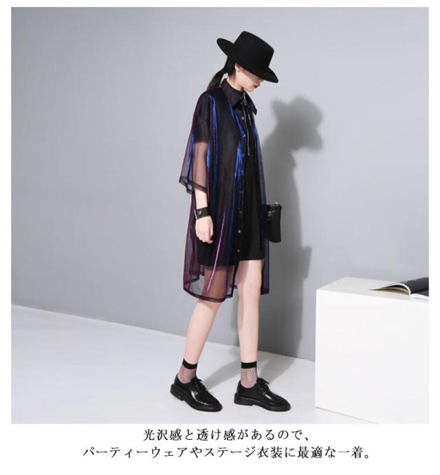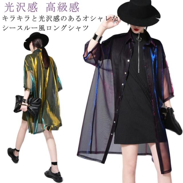 シアーシャツ トップス レディース ブラウス チュニック シャツ 高級感 光沢感 カーディガン シースルー シースルー 羽織 長袖 透け感 光沢 カラーシャツ ヒップホップ ストリート オーバーサイズ ビッグシルエット セクシー