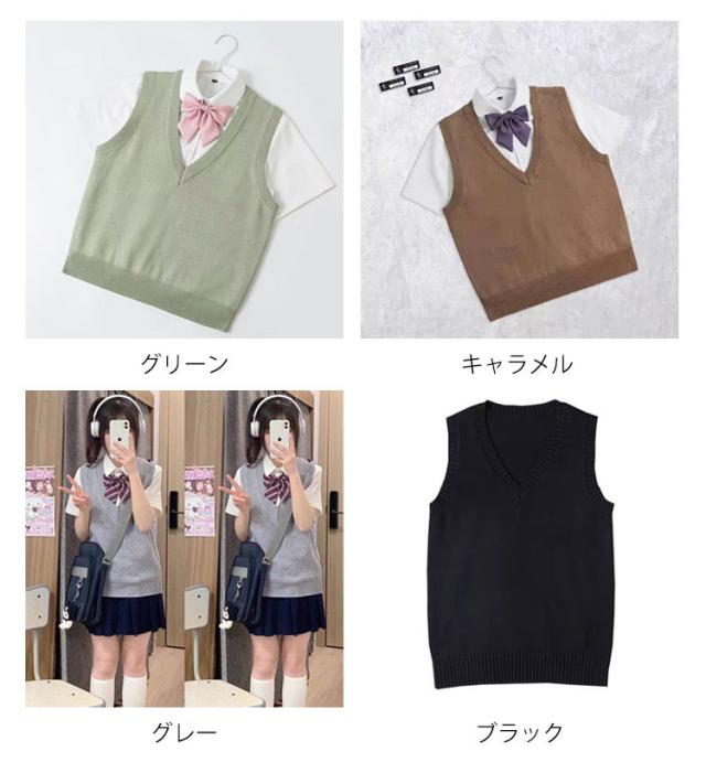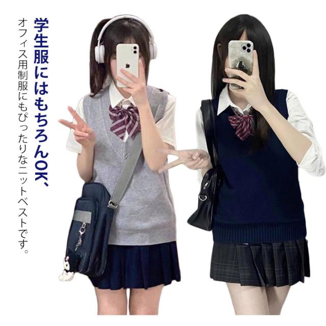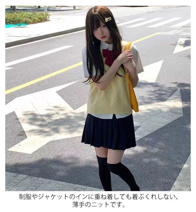 袖なし お洒落 ノースリーブ Vネック 高校生 学生制服 チョッキ 無地 ベスト ニットベスト 通学 女子高生 中学生 スクールベスト オールシーズン 学院風 男女兼用 ニットベスト シンプル コスチューム