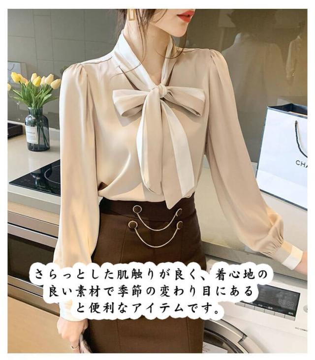 ボウタイシャツ ボウタイ ブラウン レディース OL 長袖 バイカラーボウタイ 着?せ 女性 シャツ シフォンブラウス リボン付き シャツブラウス トップス きれいめ 無地 通勤 ビジネス ボウタイ 大きいサイズ 上品 ギフト