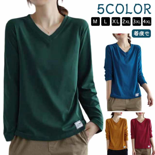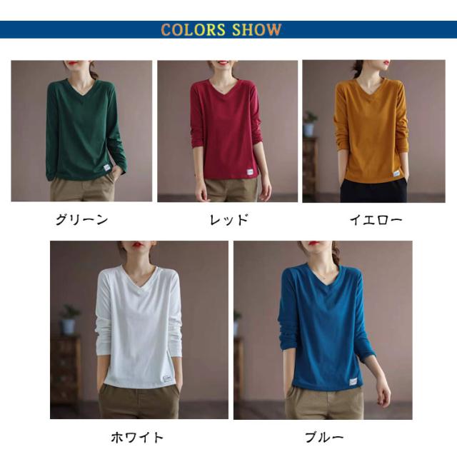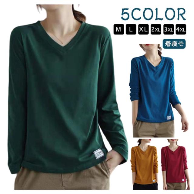 長袖 ティシャツ ホワイト カットソー トップス ロンT カットソー インナー オフィス シンプル レディース カジュアル 長袖tシャツ おしゃれ 無地 きれいめ Vネック トップス 重ね着 秋 秋服 大きいサイズ 体型カバー