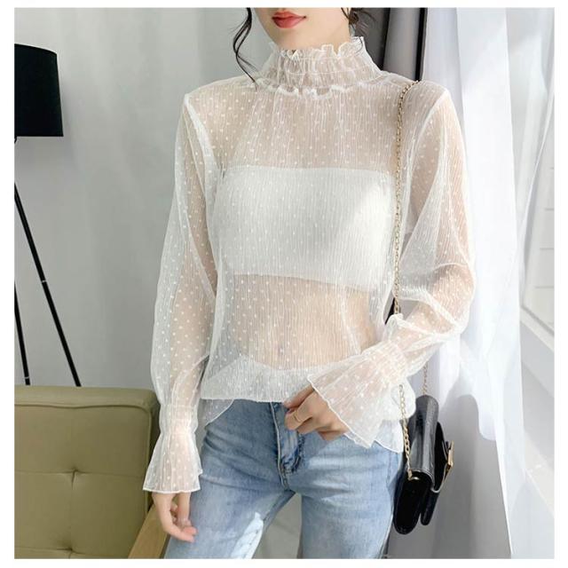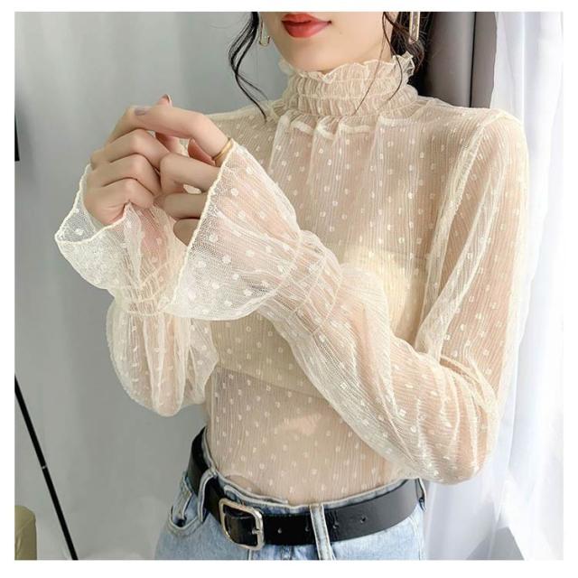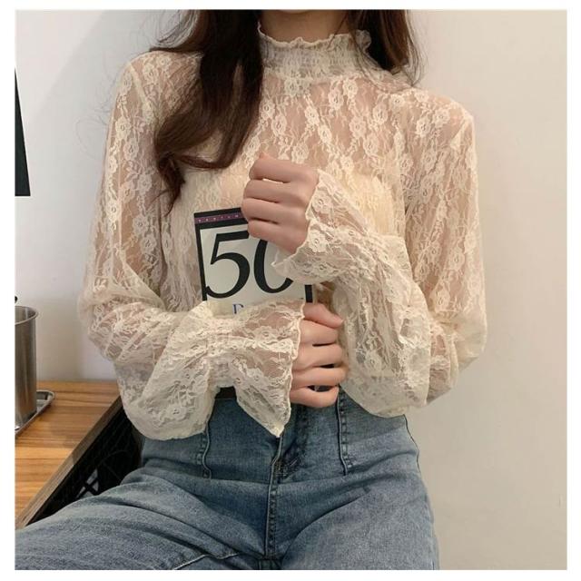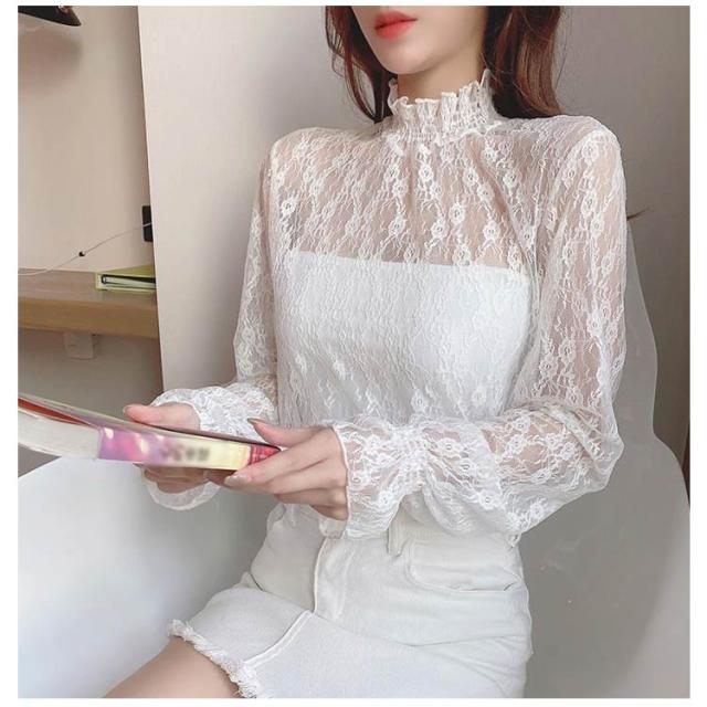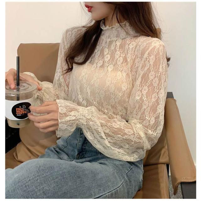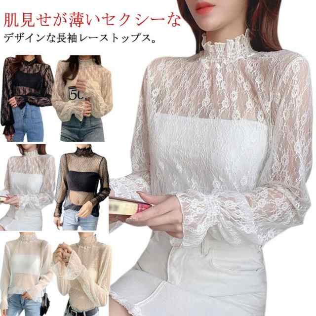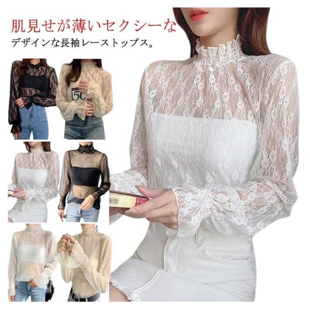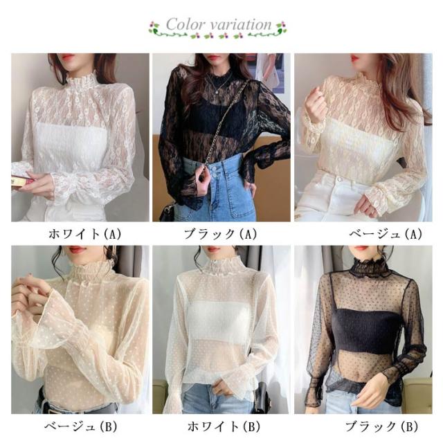 ハイネック レディース レース レディース トップス 長袖 トップス 立ち襟 総レース シャツ 立ち襟 着やすい カットソー おしゃれ シースルー レースインナー 花柄 柔らかい 重ね着 透け感 大人 春 夏 冬 オールシーズン 母の日