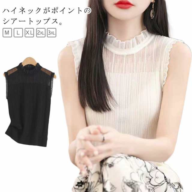 付け襟 ノースリーブ カットソー レディース タンクトップ キャミソール インナー 紫外線対策 ハイネック レイヤード タンクトップ タートルネック シースルー uvカット トップス UV対策 薄手 チュールレース