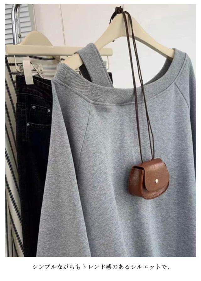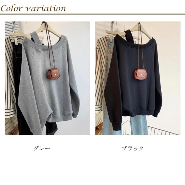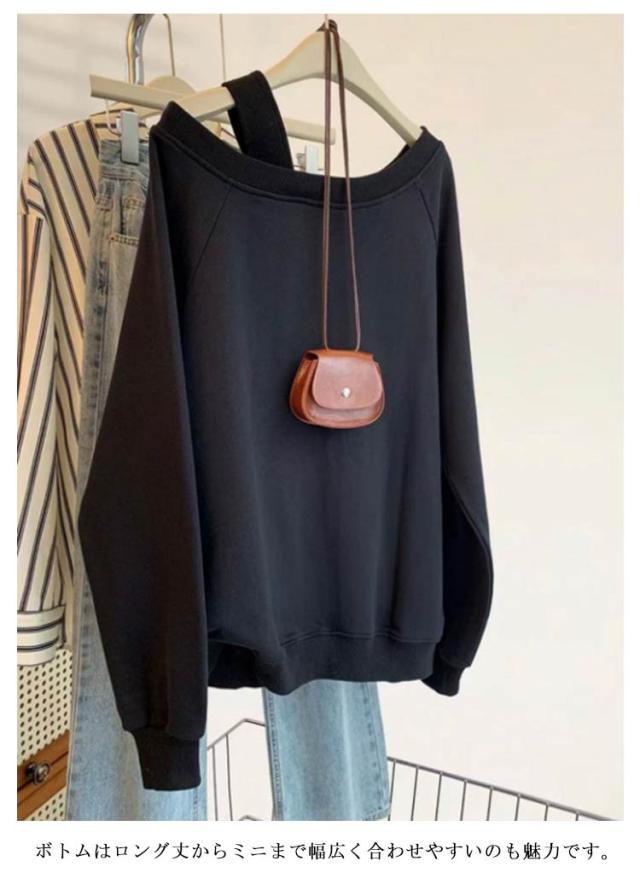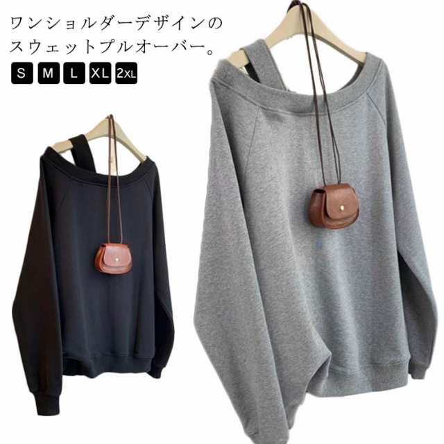 プルオーバー オーバーサイズ レーナー ワンショルダー ゆったり グレー アシンメトリー 秋 トップス スウェット カジュアル プルオーバー 無地 可愛い ボリューム袖 ショート丈 オフショルダー 韓国ファッション プルオーバー グレー ブラック