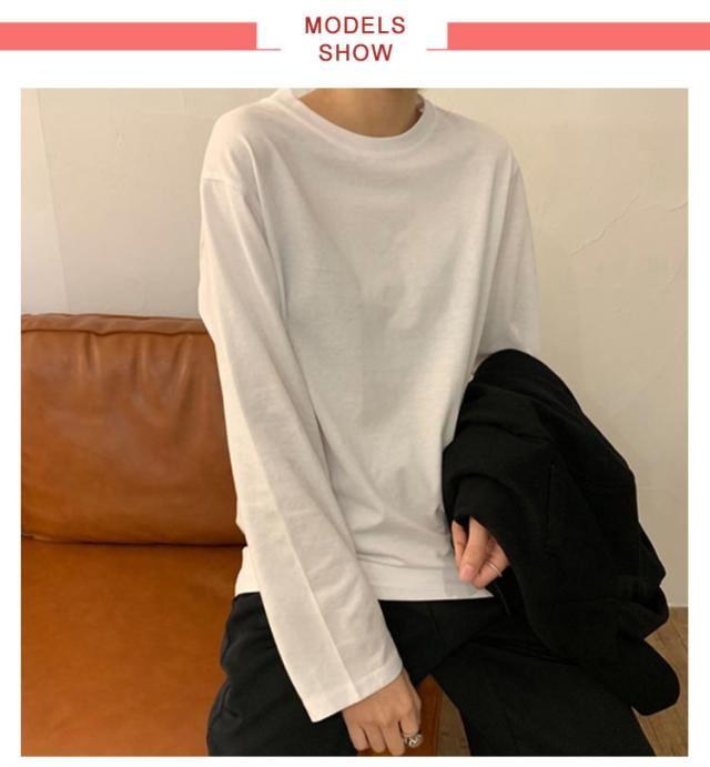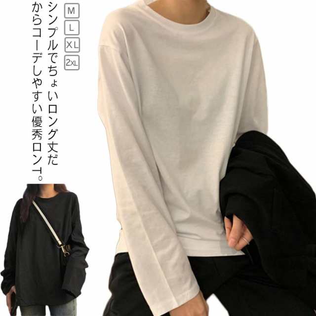 無地tシャツ シンプル おしゃれ Tシャツ 長袖 カットソー 送料無料 ロングtシャツ ゆったり インナー ラウンドネック トップス 白 黒 ルームウェア 部屋着 秋 秋服 秋物