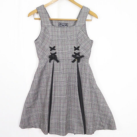 【中古】メゾピアノ mezzo piano ジャンパースカート レースアップ ボックスプリーツ S(140) チェック グレー 2sa6465