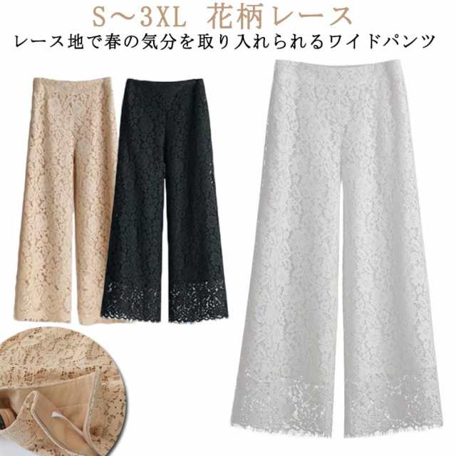 レースパンツ 総レース レース パンツ ワイドパンツ 花柄レース レディース ワイド 裏地付き ロングパンツ 長ズボン ボトムス 可愛い 大きいサイズ 9分丈 エレガント ゆったり 体型カバー 美脚 着?せ きれいめ 送料無料