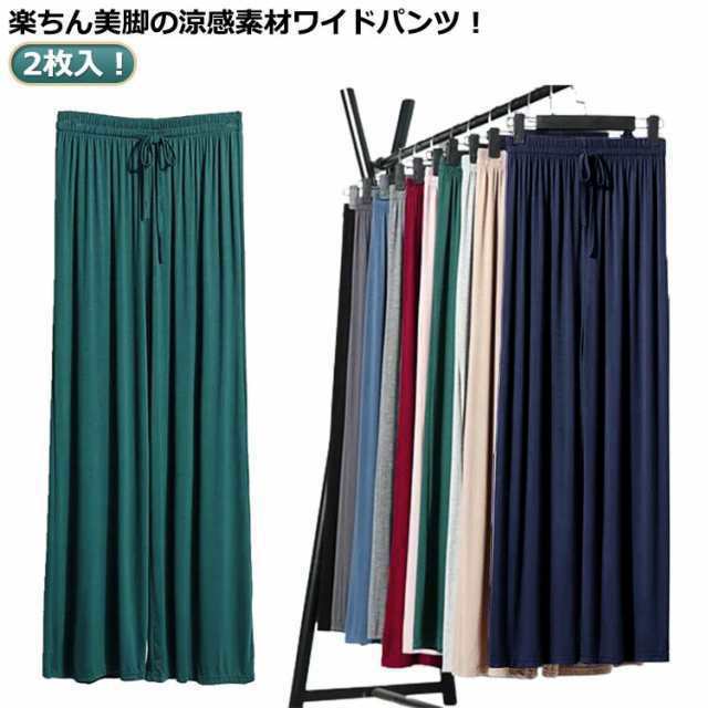 2枚入! 10色選べる!接触冷感 パンツ ワイドパンツ レディース ロング丈 夏 フレアパンツ ガウチョパンツ ヨガパンツ リラックスパンツ ダンスパンツ イージーパンツ ルームウエア 部屋着 ルームパンツ シンプル 無地 楽チン ゆったり
