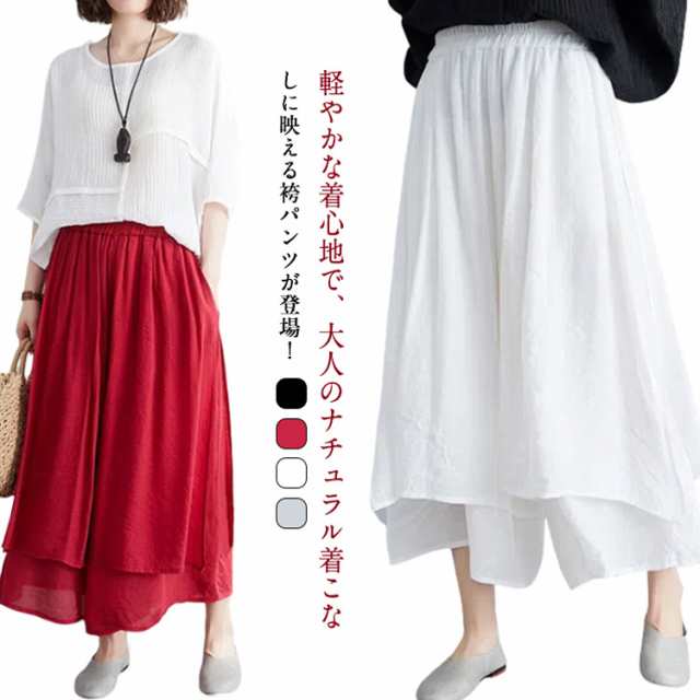 袴パンツ ワイドパンツ レディース ロングパンツ ガウチョパンツ アシンメトリー 春夏 9分丈 ダンスパンツ ウエストゴム モード系 イージーパンツ ボトムス スカンツ きれいめ 体型カバー お洒落 送料無料
