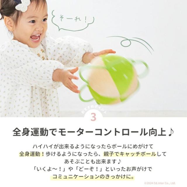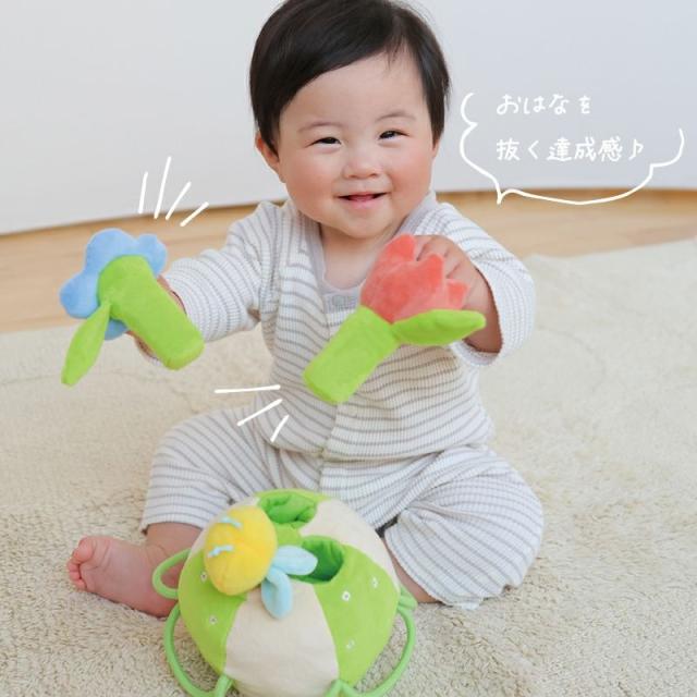 ラトルをボールから抜く時に「すぽん!」と効果音をつけてあげると大喜び間違いなし!親子のコミュニケーションにも 「投げる」「転がす」「掴む」「追いかける」「抱きしめる」など赤ちゃんの五感を存分に刺激する遊びが楽しめます。
