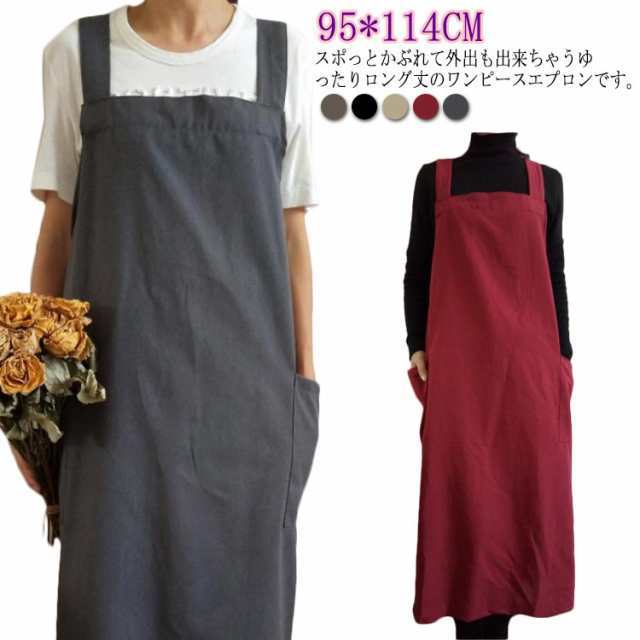 エプロン チュニックエプロン ワンピース 大きいサイズ レディース ゆったり キャミワンピ 綿麻 ロング丈 かぶるだけ プレゼント おしゃれ ナチュラル シンプル カフェエプロン 北欧風 実用的