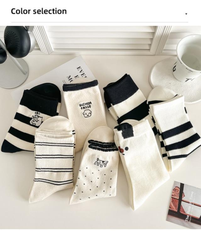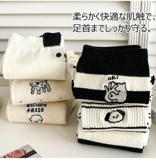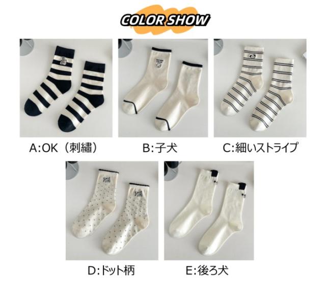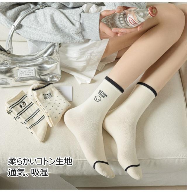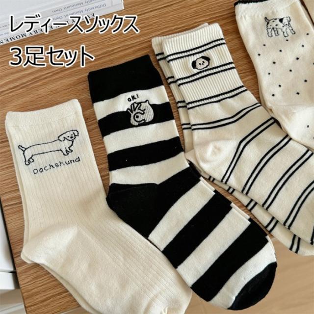 靴下 犬柄 3足セット レディースソックス いぬ 刺? 靴下セット くつ下 女性 春夏 コットン 防臭 シンプル 無地 カジュアル 柔らかい 通気性 伸縮性 吸湿性 毛玉防止 22-25cm 送料無料