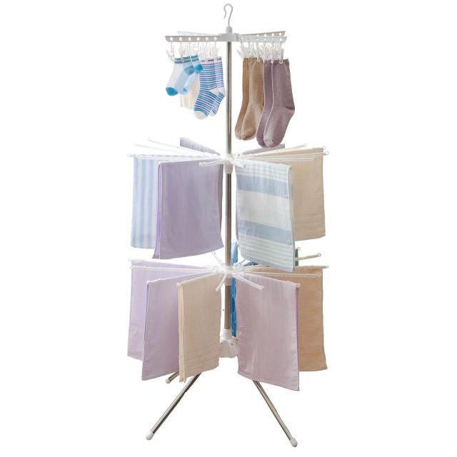 天馬 フェイスタオルが32枚、靴下が12足干せるスタンド型室内物干し 洗濯物干し 組立式 室内用 スタンド物干しパラソル型3段 衣類 ホワイ