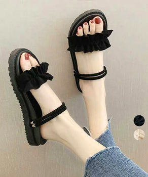 大人ガーリーラッフルサンダル ミュールサンダル 夏靴 可愛いコンフォートサンダル ストラップサンダル きれいめ疲れない靴靴 ビーチサンダル旅行 サマースリッパ夏海