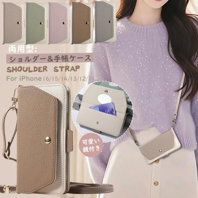 iphone17ケース 鏡付き ショルダー スマホケース 耐久性 iphone 16 pro 16e 全面保護 iphone 11 ミラー iphone16 鏡 iphone 15 手帳型 iphone13 mini 携帯 iphone14pro 12 pro max ケース ストラップ レディース カード 小銭入れ おしゃれ 耐汚れ バイカラー シボレザー