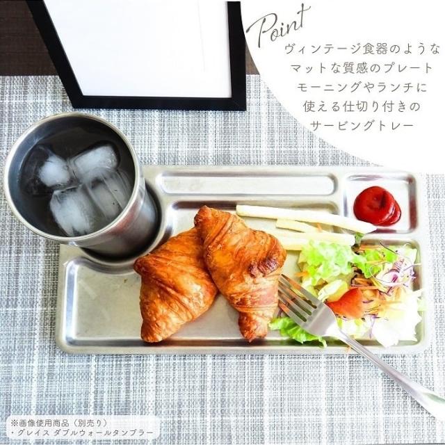 ヴィンテージ食器のようなマットな質感の仕切り付きステンレスプレート。