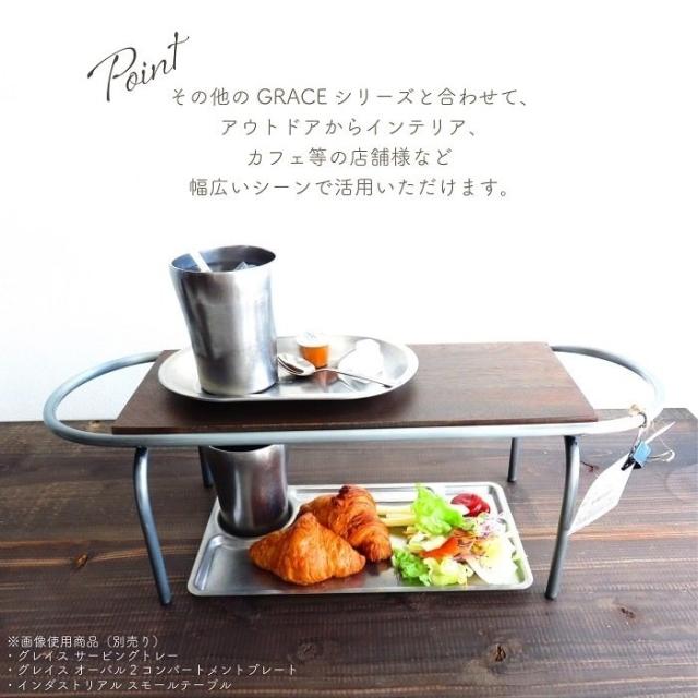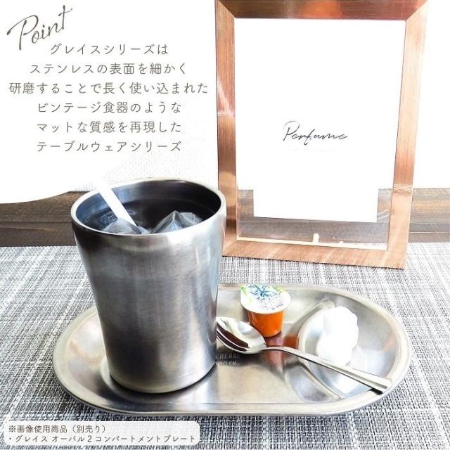 GRACE(グレイス)はステンレスの表面を細かく研磨することで、長く使い込まれたビンテージ食器のようなマットな質感を再現したテーブルウェアシリーズです。