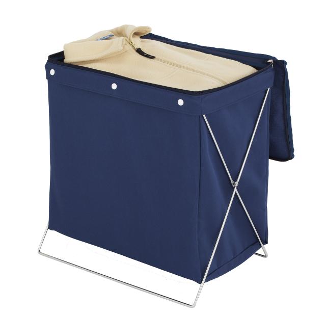 ◆商品名:アストロ 収納ケース ネイビー フタ付き W42×D25×H45cm 折りたためてコンパクトに収納できる カバン置き 荷物入れ 荷物置き サイドワゴ