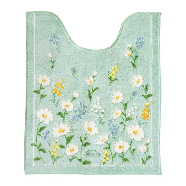 オカ(OKA) フルールブラン トイレマット ロングサイズ 約75cm×63cm グリーン (洗える ロング 花柄 フェミニン)