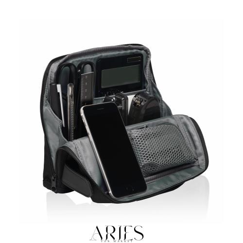 POINT1:必要なものがこれ一つで収容できる、整理しやすい多機能ポケット フリーアドレスやカフェなどで働くワーカーに必要な物をまとめてきれいに収容することができる。ハサミやペンなどの文房具類から、マウスやACアダプタなどのガジェット類など、自分の働き方に合った物を収容できる。
