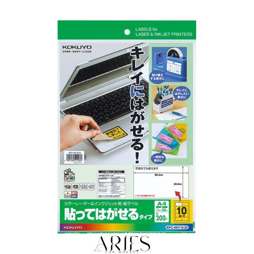 ◆商品名:コクヨ カラーレーザー インクジェット ラベル 貼ってはがせる KPC-HH110-20