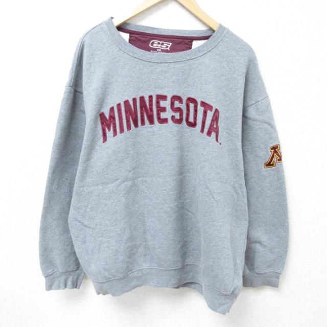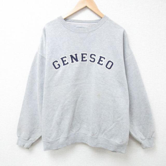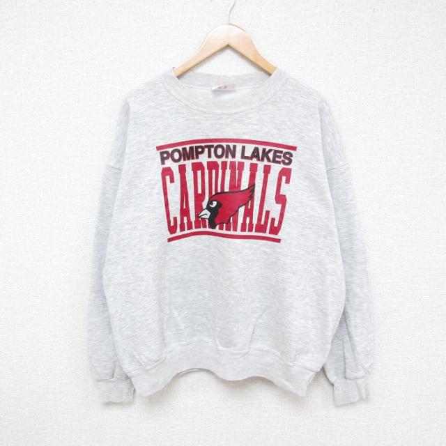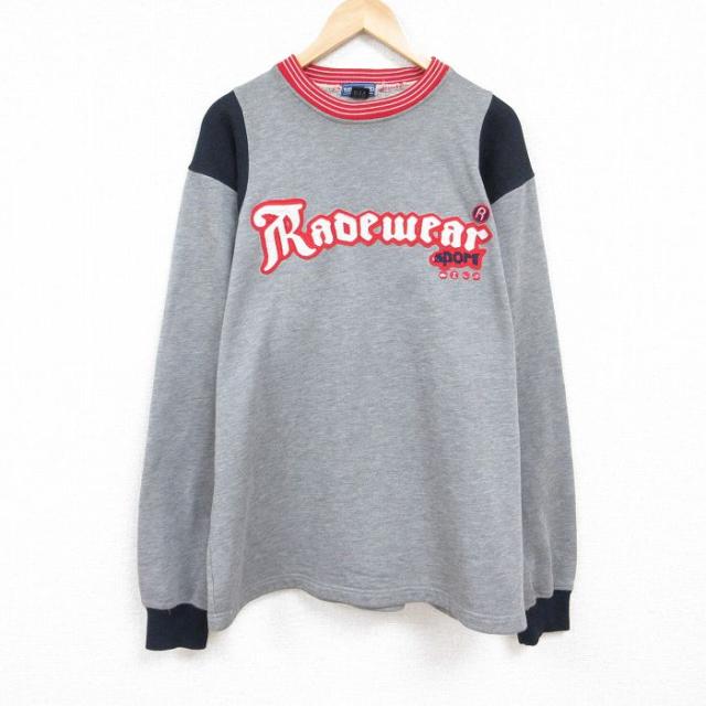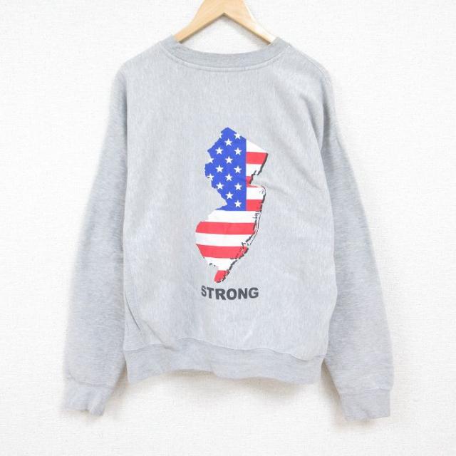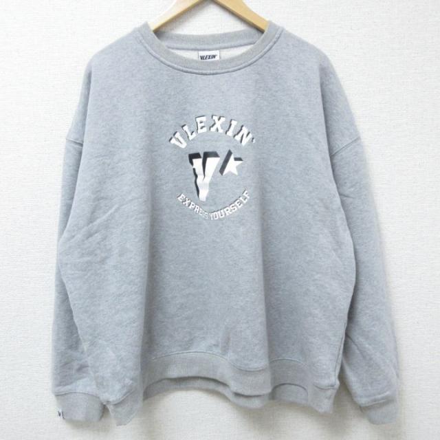 古着 長袖 スウェット メンズ ヤシの木 大きいサイズ クルーネック グレー 霜降り XLサイズ 中古 スエット トレーナー トップ 中古 古着