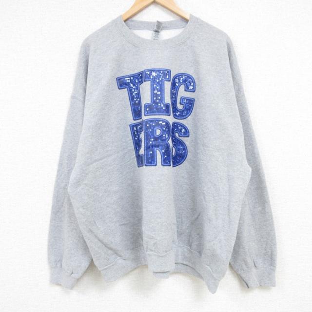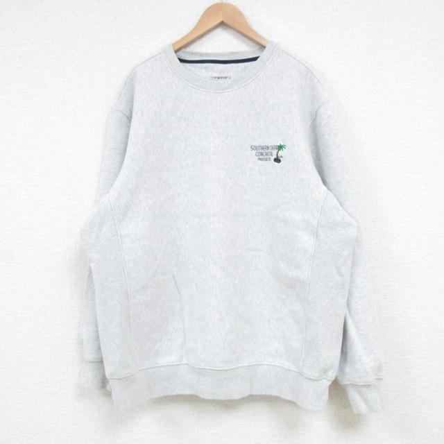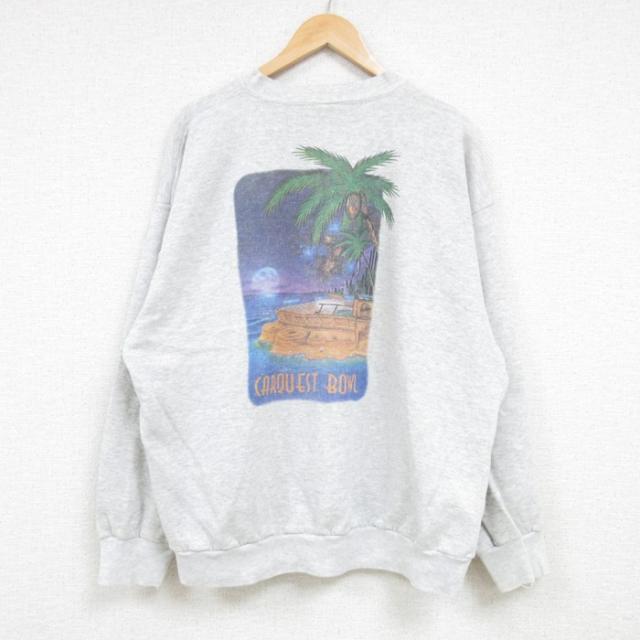 【商品名】 XL★古着 長袖 スウェット メンズ ヤシの木 大きいサイズ クルーネック グレー 霜降り